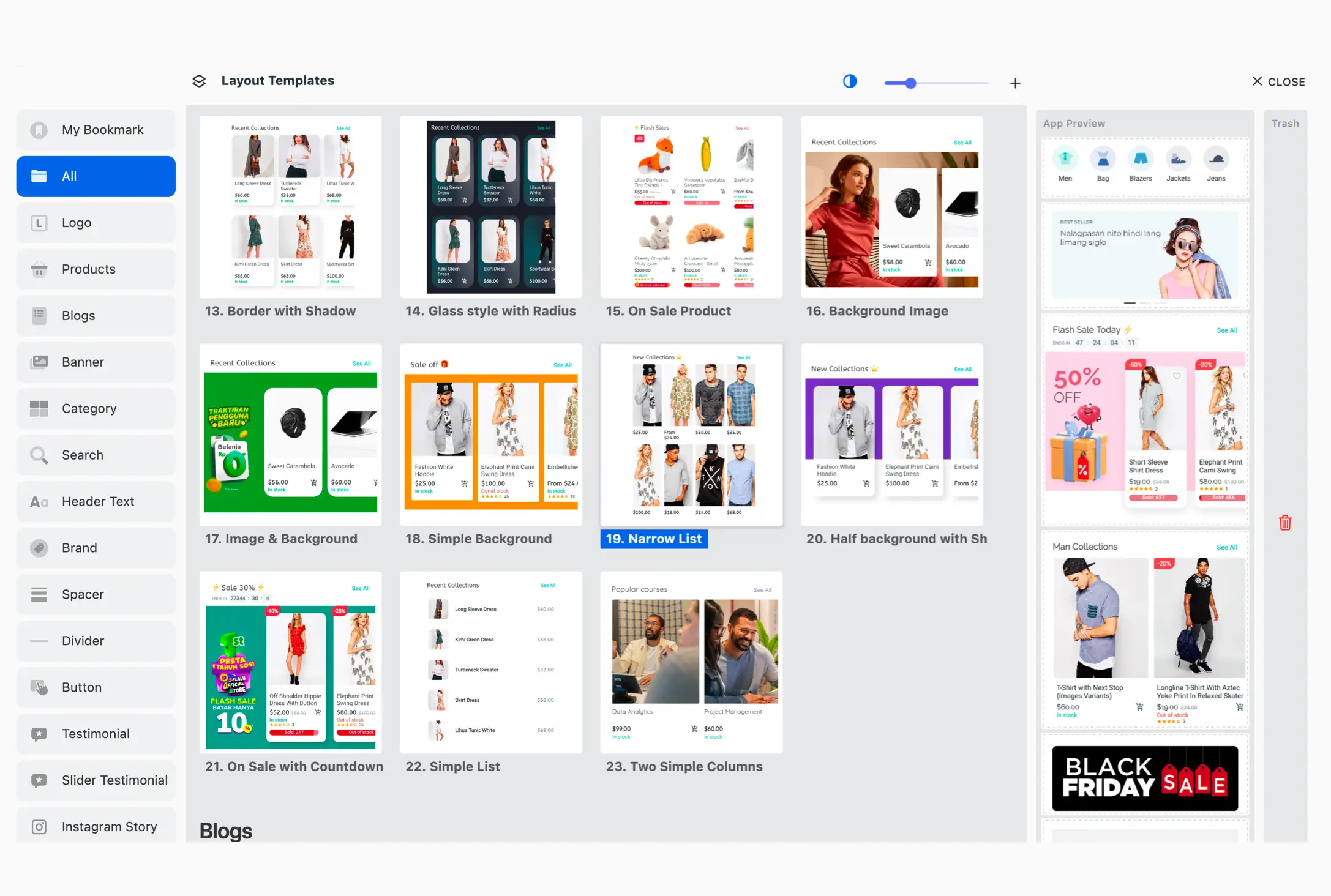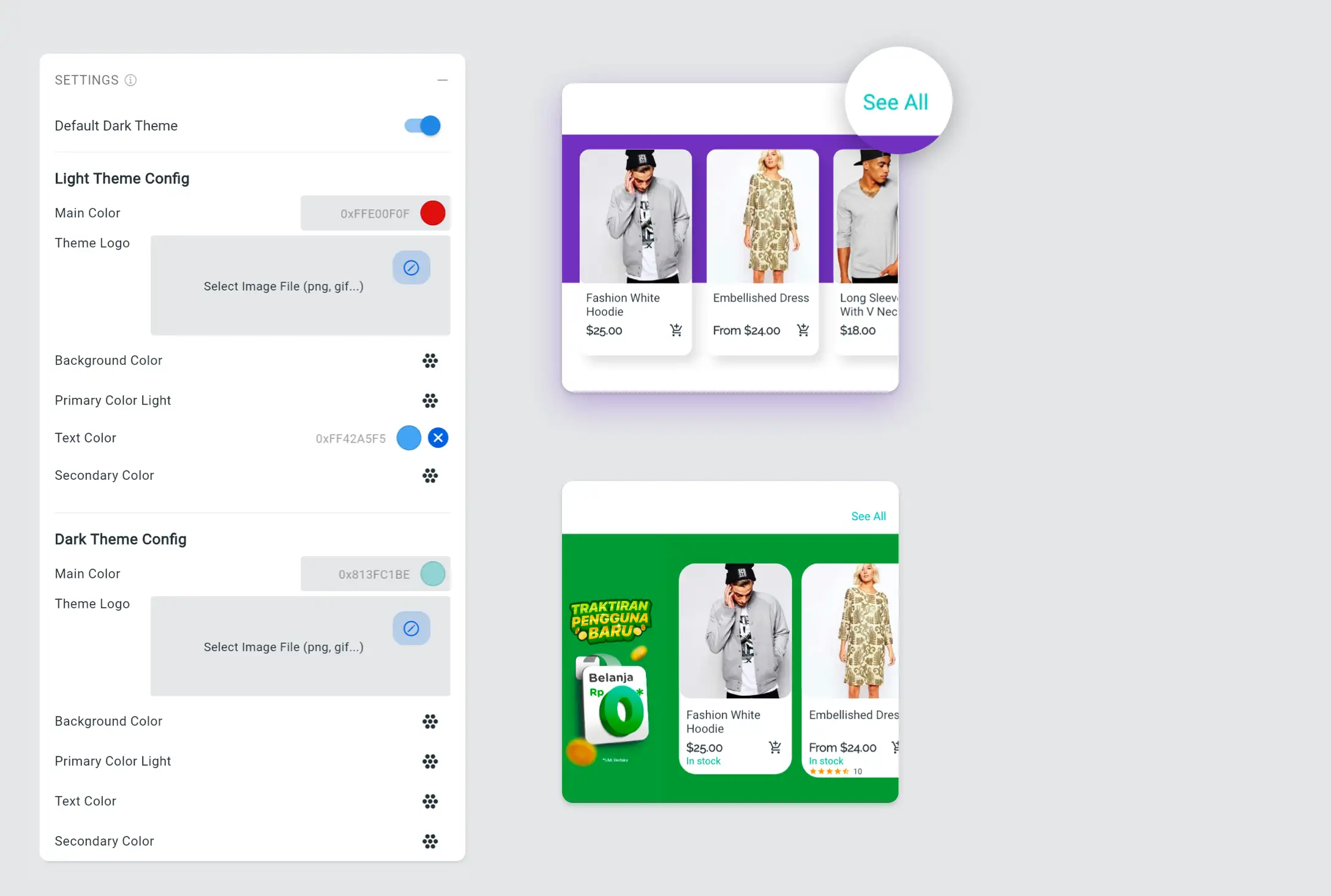 Powerful pre-made design UI, like Banner Slider, Product List, Instagram... Connect with your website via API smoothly.
